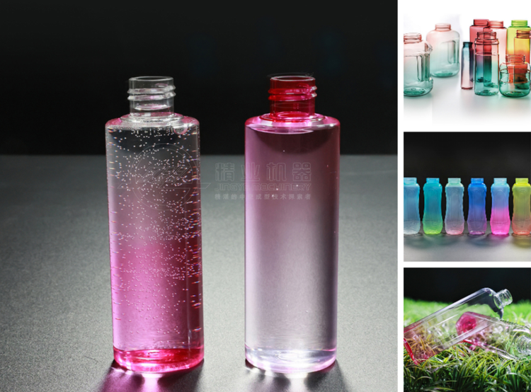 化妆品包装注重美观、安全和轻量,双色或渐变效果提升个性,但传统喷涂方式不仅会增加生产成本还易造成污染。精业通过自主研发的双混色注拉吹成型技术,实现一步法生产双色渐变瓶,省去喷涂环节,降低能耗与污染。这项技术适用于PET、PP等多材料,方便直接回收利用,适应包装业的绿色环保理念的创新,适应行业发展的主旋律。