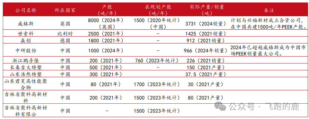24年PEEK主要厂商产能情况(吨)