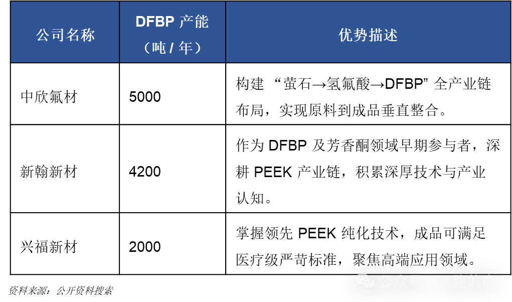 供给端,现在能大规模生产 DFBP 的厂家不多,国外的 DFBP 产能主要是威格斯自己用的,剩下的产能大多在中国,生产企业有新瀚新材、中欣氟材、兴福新材等。