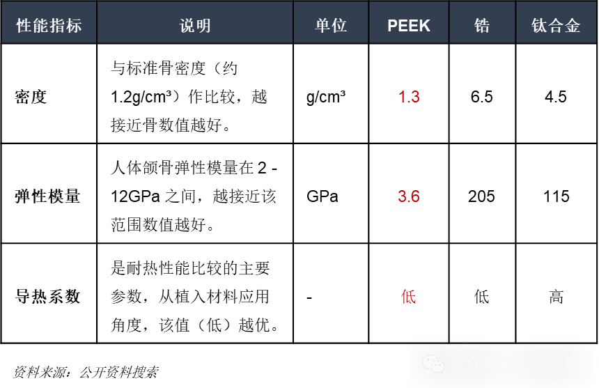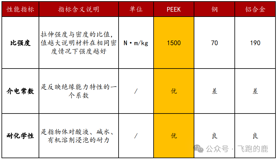 02-1、PEEK与通用金属材料指标对比情况
