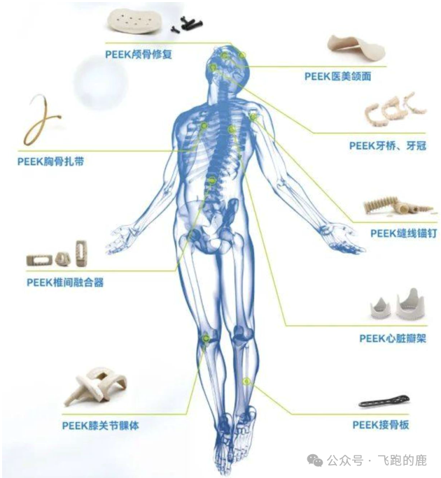 PEEK 材料密度和弹性模量跟人体骨骼接近,而且和人体相容性好,不会引起过敏,也不会导致染色体异常,加上抗疲劳强度高、耐磨耐腐蚀,还能配合 3D 打印这类新工艺,在生物医疗领域前景很大。