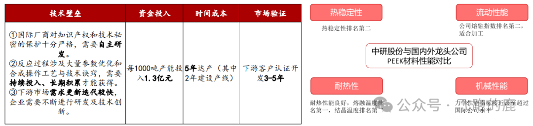 行业进入壁垒高:PEEK 树脂合成技术难、投入大,每 1000 吨产能约投 1.3 亿元,产线 2 年建成、5 年达产,新进入者需 3-5 年做客户认证。