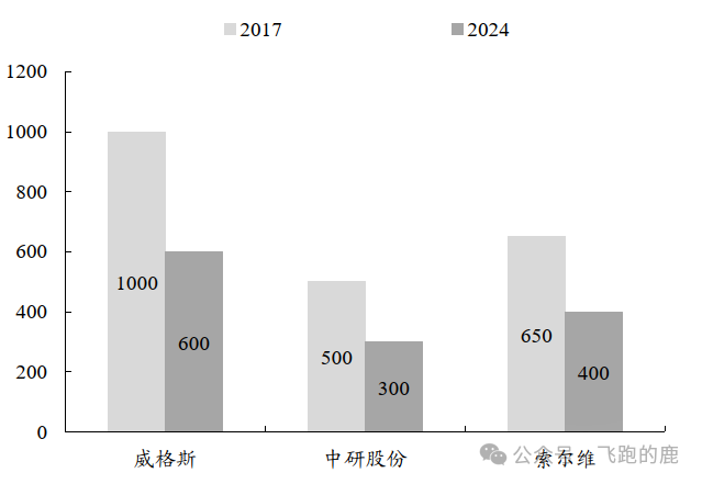 国产替代有了成效,PEEK 价格降了不少。从我们的报告看,国产替代明显拉低了 PEEK 价格,2017 年以来,威格斯、中研股份、索尔维的工业级 PEEK 价格,分别从每公斤 1000 元、500 元、650 元降到了 600 元、300 元、400 元。