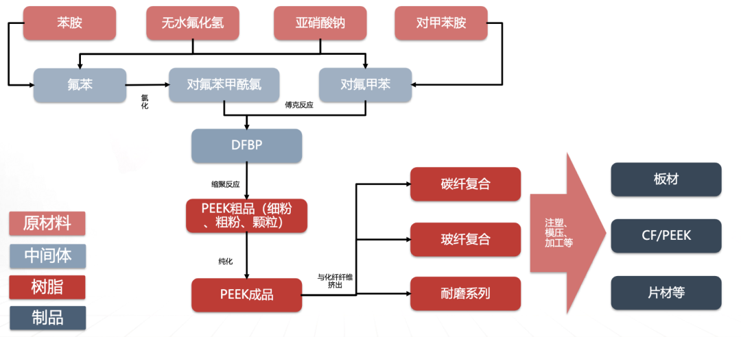 PEEK产业链中游生产进入门槛高,生产工艺复杂。