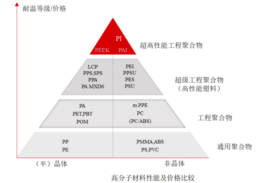 可以说“没有聚酰亚胺就不会有今天的微电子技术”,其性能居于高分子材料金字塔的顶端。