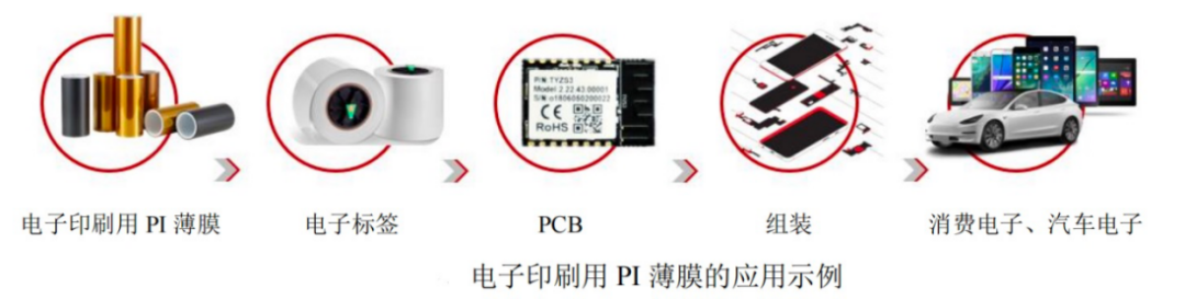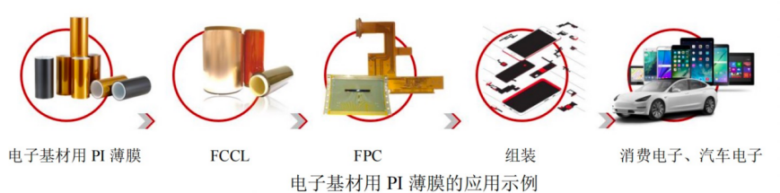 作为FCCL(柔性覆铜板,系生产FPC的基材)、封装基板(COF)等的核心原材料,终端行业涉及消费电子、5G通信、汽车、工控医疗、航天军工等各个领域。