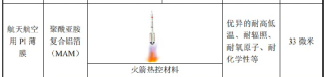 主要用于空间飞行器的热控或防护材料等,需具备优异的耐高低温、耐辐照、低真空质量损失和低可凝挥发物等特性。