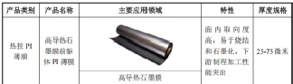 主要用于高导热石墨膜的制备,用于散热和导热。高导热石墨膜前驱体PI薄膜经碳化、石墨化后,形成高导热石墨膜,再经压延、贴合、模切等工序后装入电子产品。