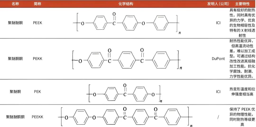 下图:主要的聚芳醚酮类(PAEK)材料: