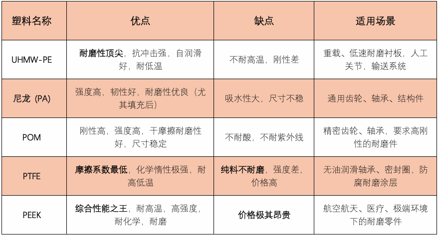 因此,选择最耐磨的塑料,关键要看您的具体需求: