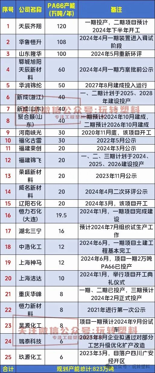 好家伙,这产能规划要是全部能全部落地,塑料君生吃一包25KG的PA66切片,超过800万吨是认真的吗?把欧美日韩传统PA66大厂全部关了也用不完!