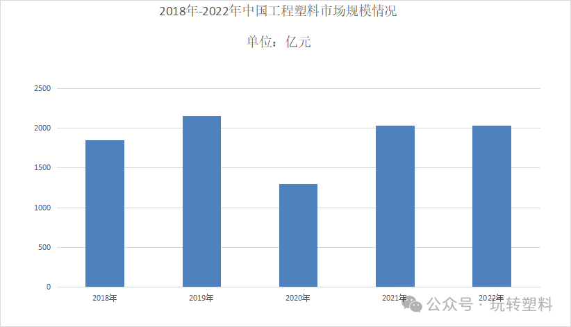2023年中国工程塑料市场规模约为2100亿元,近十年中国工程塑料市场规模整体呈现增长态势。这主要得益于工程塑料在汽车、电子、航空航天、医疗器械、集成电路等行业的广泛应用。