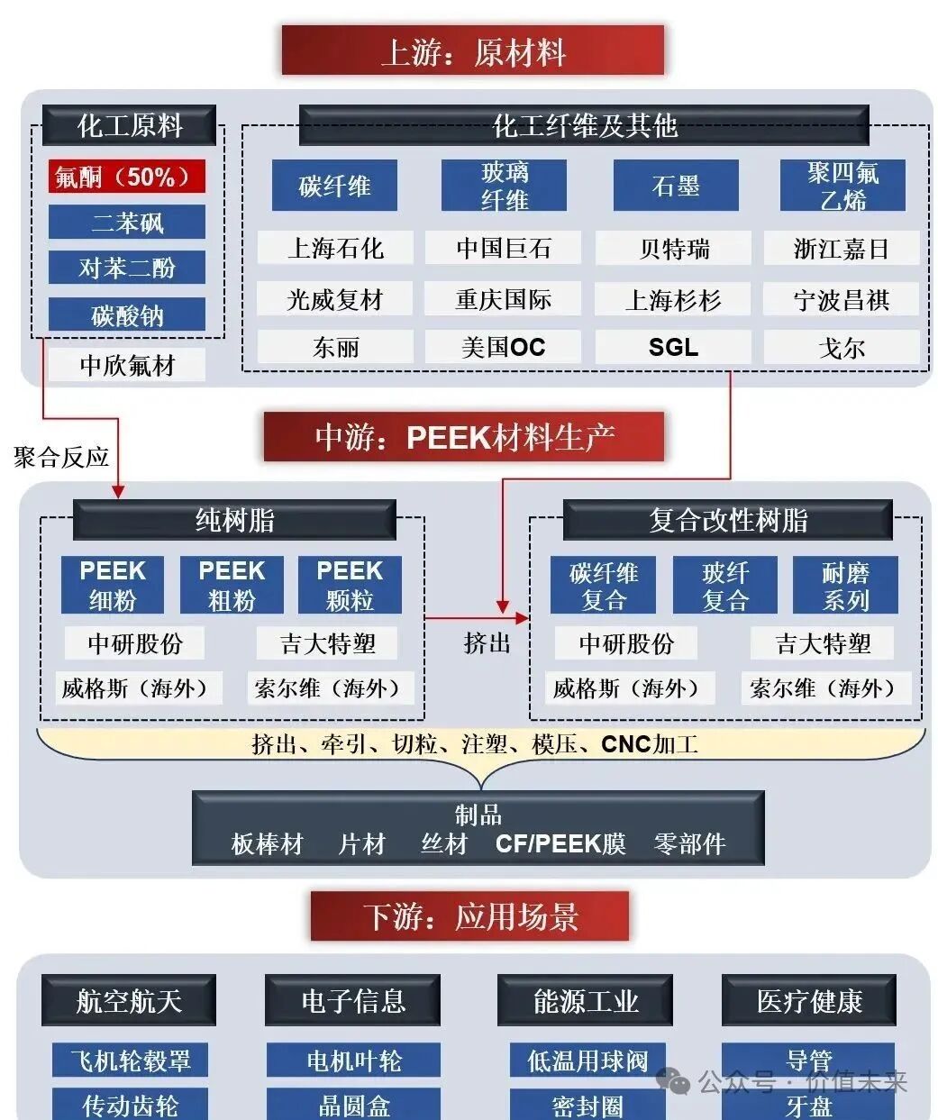 凯盛新材(301069.SZ):是国内首家生产PEKK产品的企业,现有1000吨/年PEKK产能,同时可进行PEEK改性、增强等业务。据2025年8月1日互动易,公司PEKK产品已被通用型材、喷涂、新能源汽车、军工航空航天等领域的终端客户所应用,同时,公司也在紧密跟踪电子信息(半导体)、康复医疗器械、机器人等领域对于轻量化特种材料的市场需求。目前,公司PEKK产线运行正常,产出量和良品率均在不断提升。