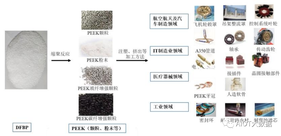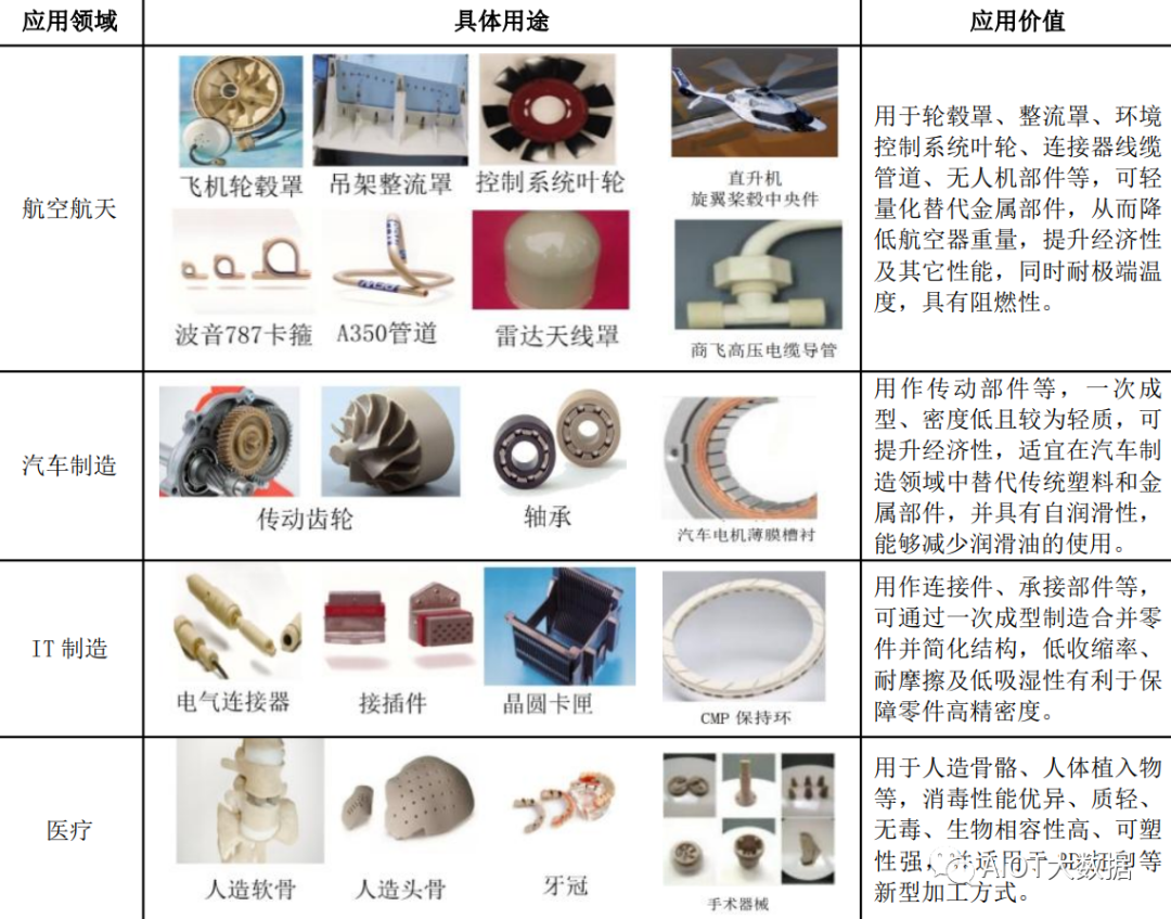 随着航空航天、IT制造、生物医学、能源工业的发展及各大生产商对应用研究的深入,PEEK作为一种新型的特种工程塑料,其应用领域从单一的军工领域扩展到电子信息、交通运输、航空航天、能源工业、医疗健康、3D打印等领域。