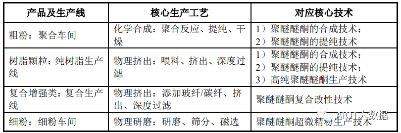 PEEK粗粉及各类产成品生产相关核心工艺、核心技术情况如下: