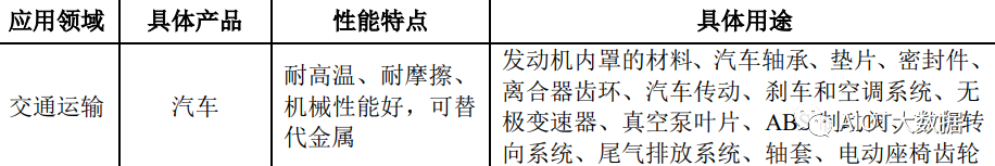 从全球消费结构来看,PEEK在交通运输领域应用最为广泛,具体如下: