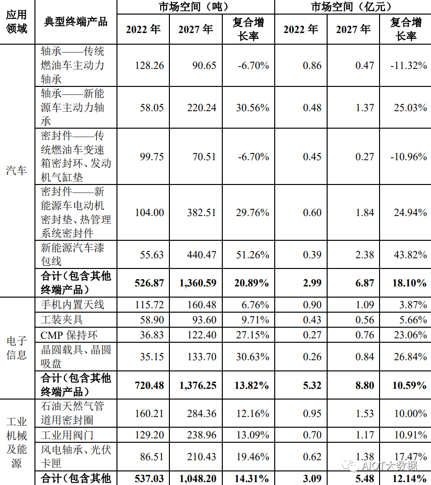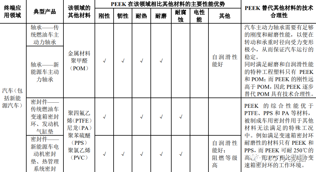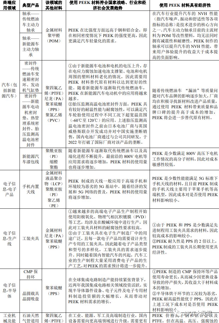 注塑类(非型材)终端客户公司主要通过注塑、模压等方式加工PEEK部件,典型的注塑类客户包括:新能源汽车领域(余姚亚杰)、半导体领域(上海赛瑾)、汽车轴承(嘉善双飞、长盛轴承)、工业机械领域(台州天环)。