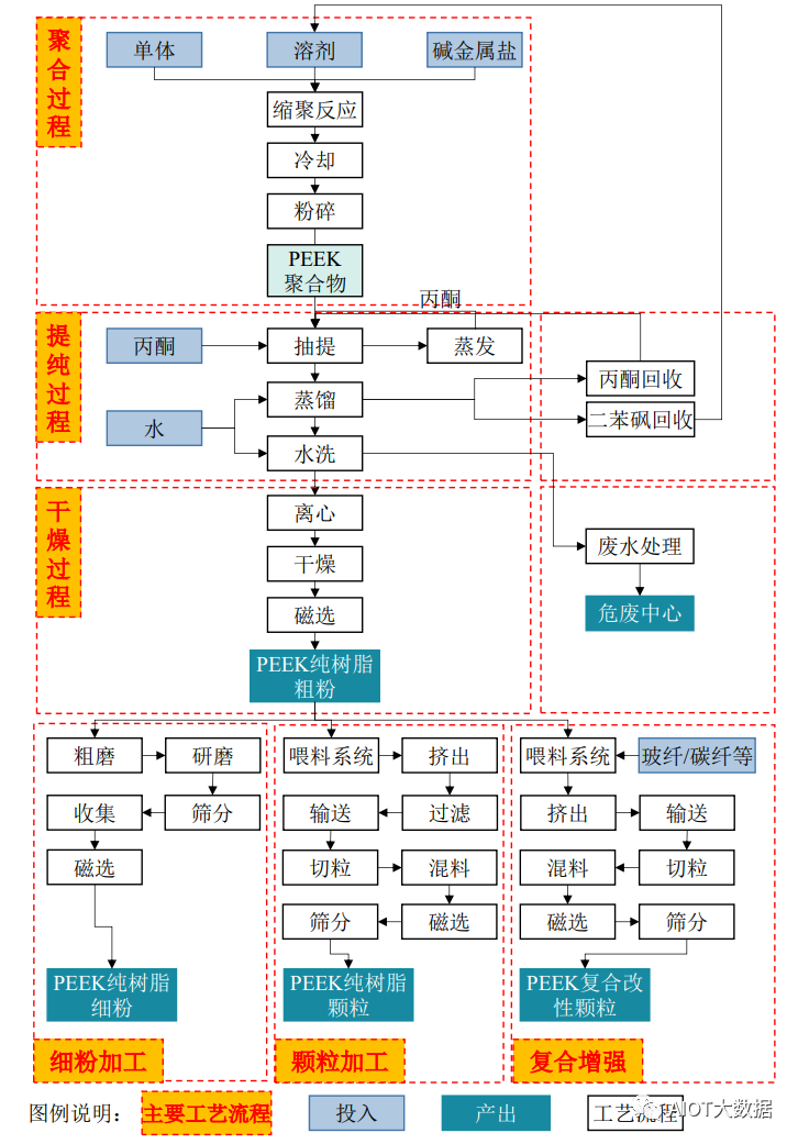 PEEK粗粉及各类产成品的生产工序、流程如下: