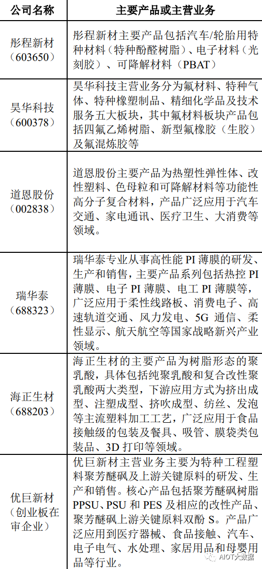 除上述企业以外,浙江鹏孚隆、长春吉大特塑、山东浩然、山东君昊高性能聚合物有限公司也相继进入PEEK树脂生产领域。