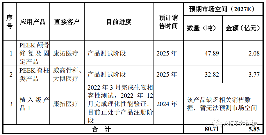 目前,山东君昊的PEEK产能为80吨/年,产品以内部自用为主,尚未规模化推向市场,其PEEK虽具备产能但距离产业化尚有距离。