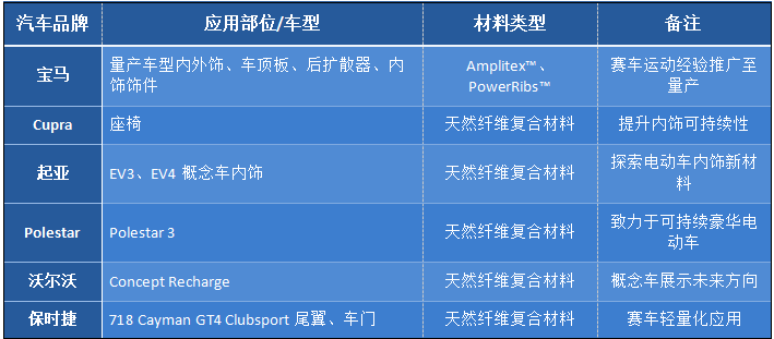 •报废处理优势:天然纤维材料在车辆报废后的处理过程中也更具可持续性。